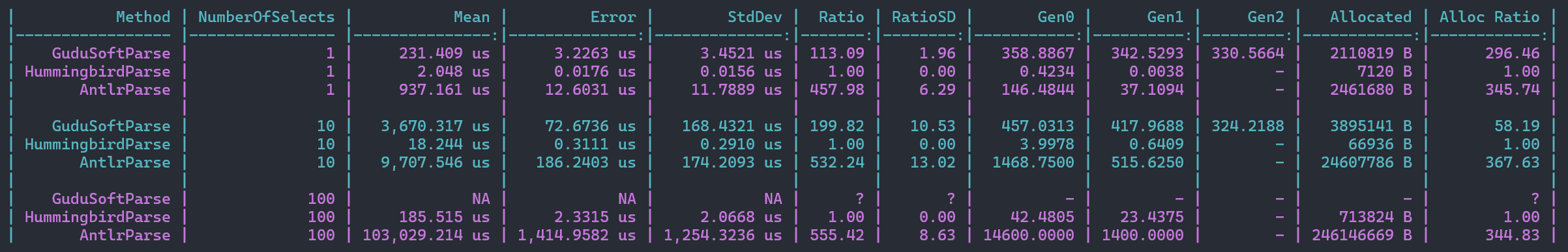 If you, by any chance, read my article from half a year ago where I have introduced our HummingBird parser, you saw that it's incredibly fast, roughly 250x-300x faster than ANTLR.