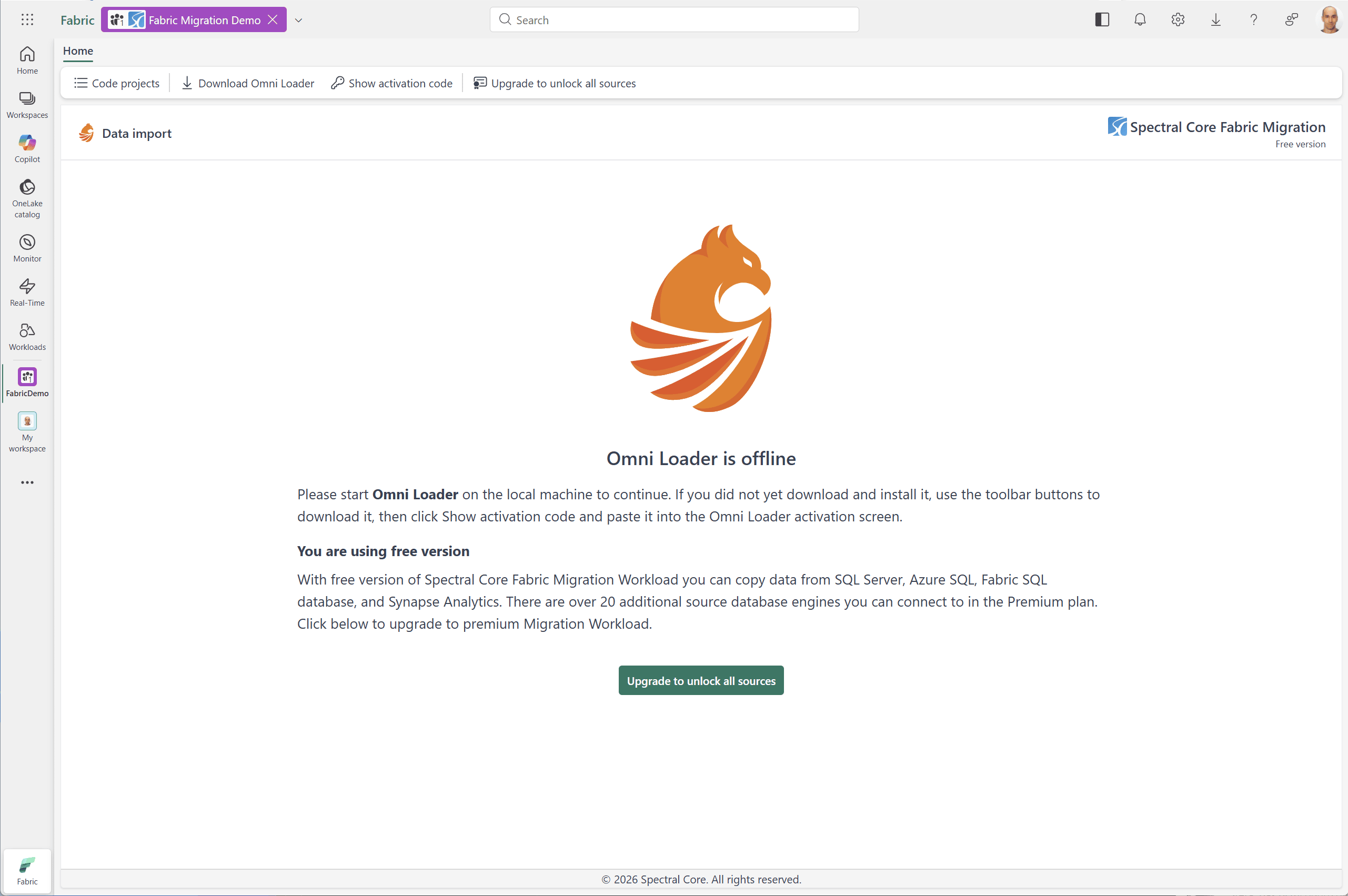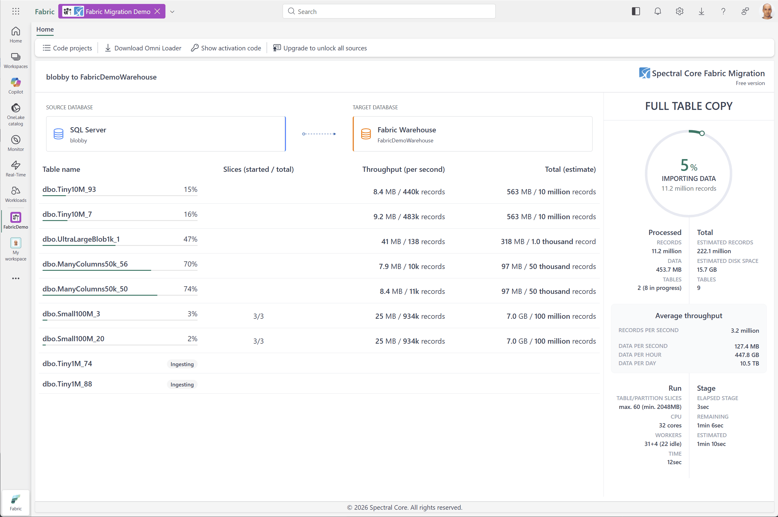 Once you start copying your tables in Omni Loader, this is how the Fabric Migration workload screen will look: