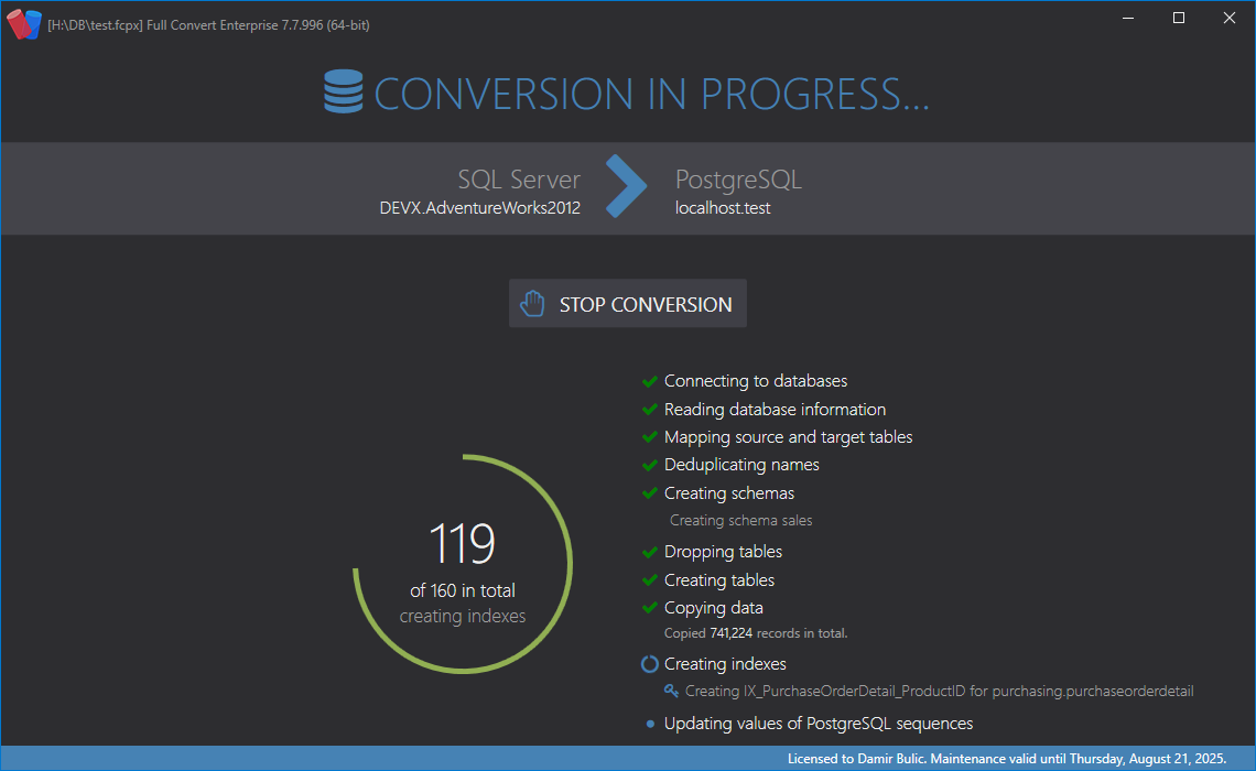 After all data is copied into target, we create the indexes. Data loading is faster when no indexes are in place, so this ordering helps with performance.