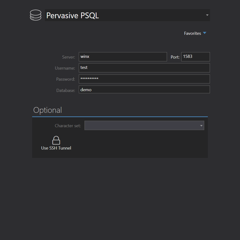 DATABASE CONNECTIONS Pervasive PSQL Pervasive PSQL uses standard relational database connection parameters.