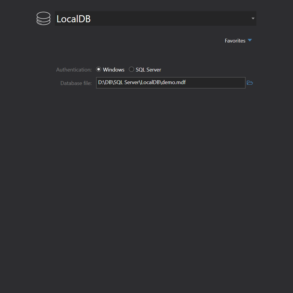 Connect to SQL Express LocalDB database simply by providing full path to its .MDF file.