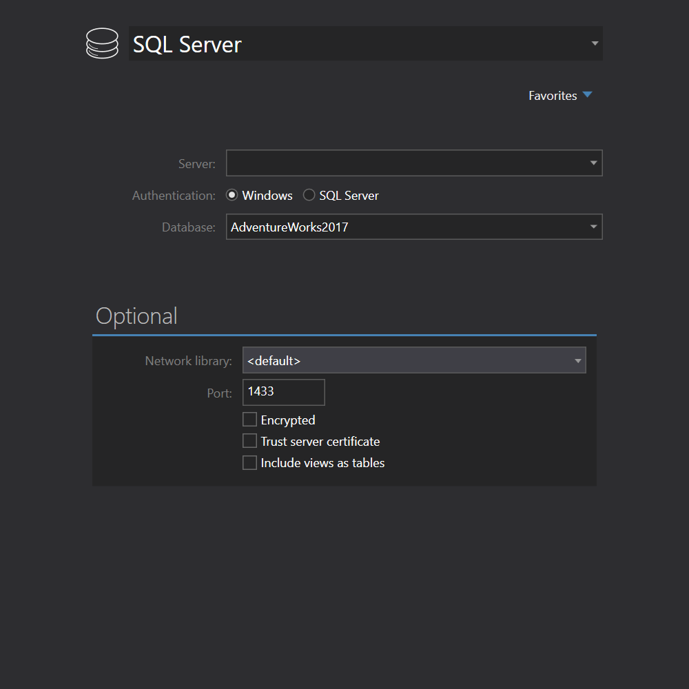 If you need to specify instance name, write down MACHINENAME\INSTANCENAME into server field. Also, if your local machine is the server, you can use dot instead of machine name (for example, you can use .\SQLEXPRESS for local SQL Server Express).