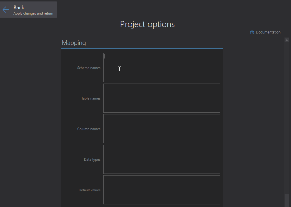 In the Project options screen, you may need to scroll down to the Mapping section to view and edit the project-level mappings: