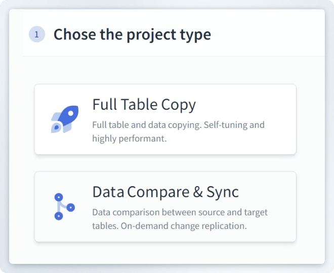 - Full Table Copy: to migrate all data and schema from the Source to the Target, which is typically what you want for a complete migration.