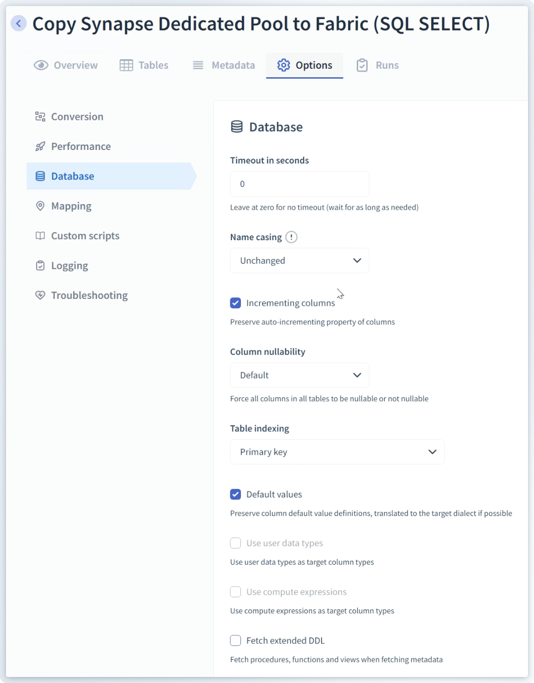 - Default values: preserve or remove all column default values.