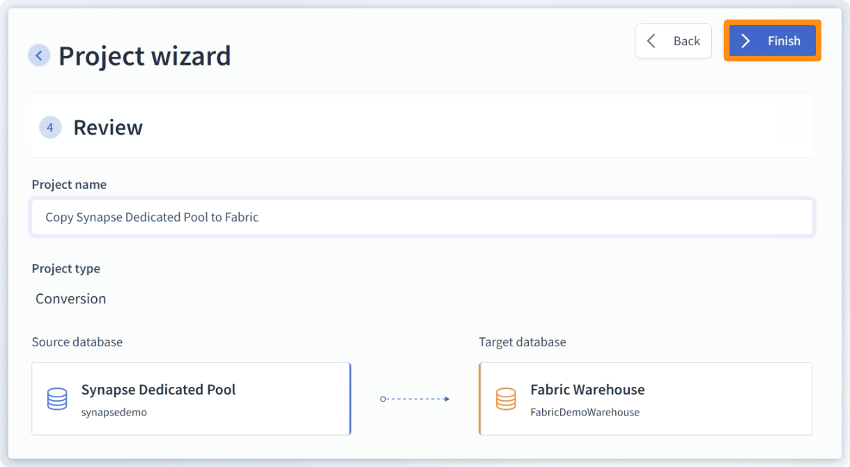 Click Finish to compete the connection between Source and Target.