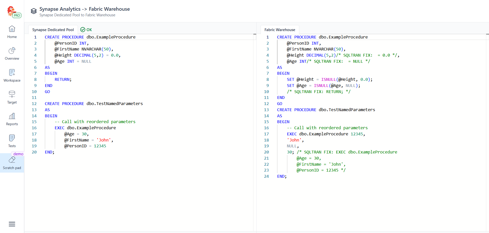 This automatic transformation enables most standard EXEC calls to continue functioning correctly in Fabric Warehouse without manual rewrites.