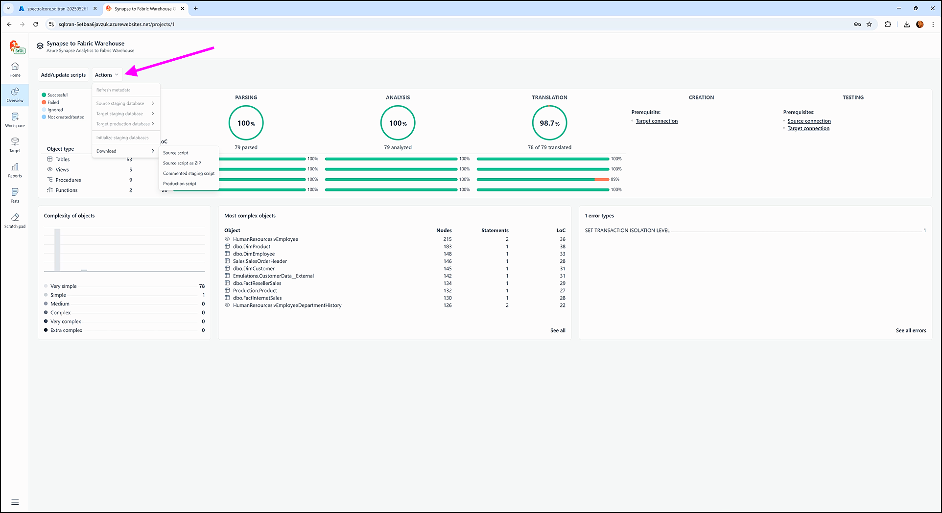 These options allow you to download both the original source scripts and the translated target scripts, in formats suitable for review, archiving, or execution.