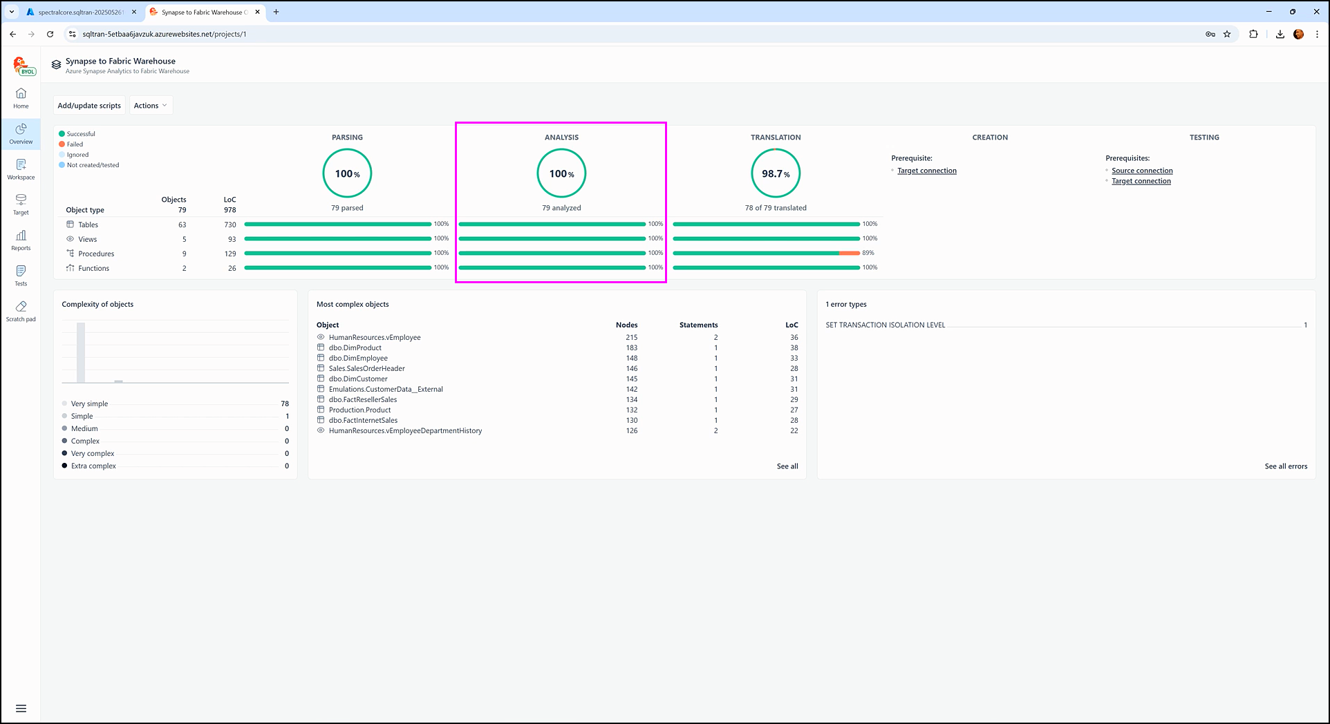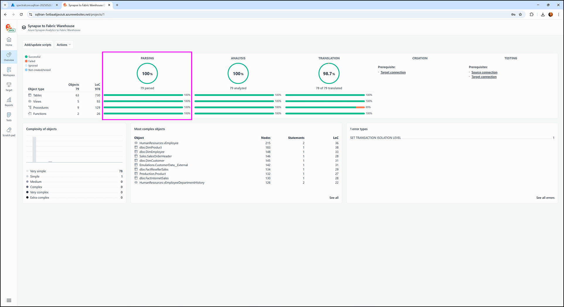 In this stage, SQL Tran analyzes the raw SQL code to build a complete semantic model of your source database.