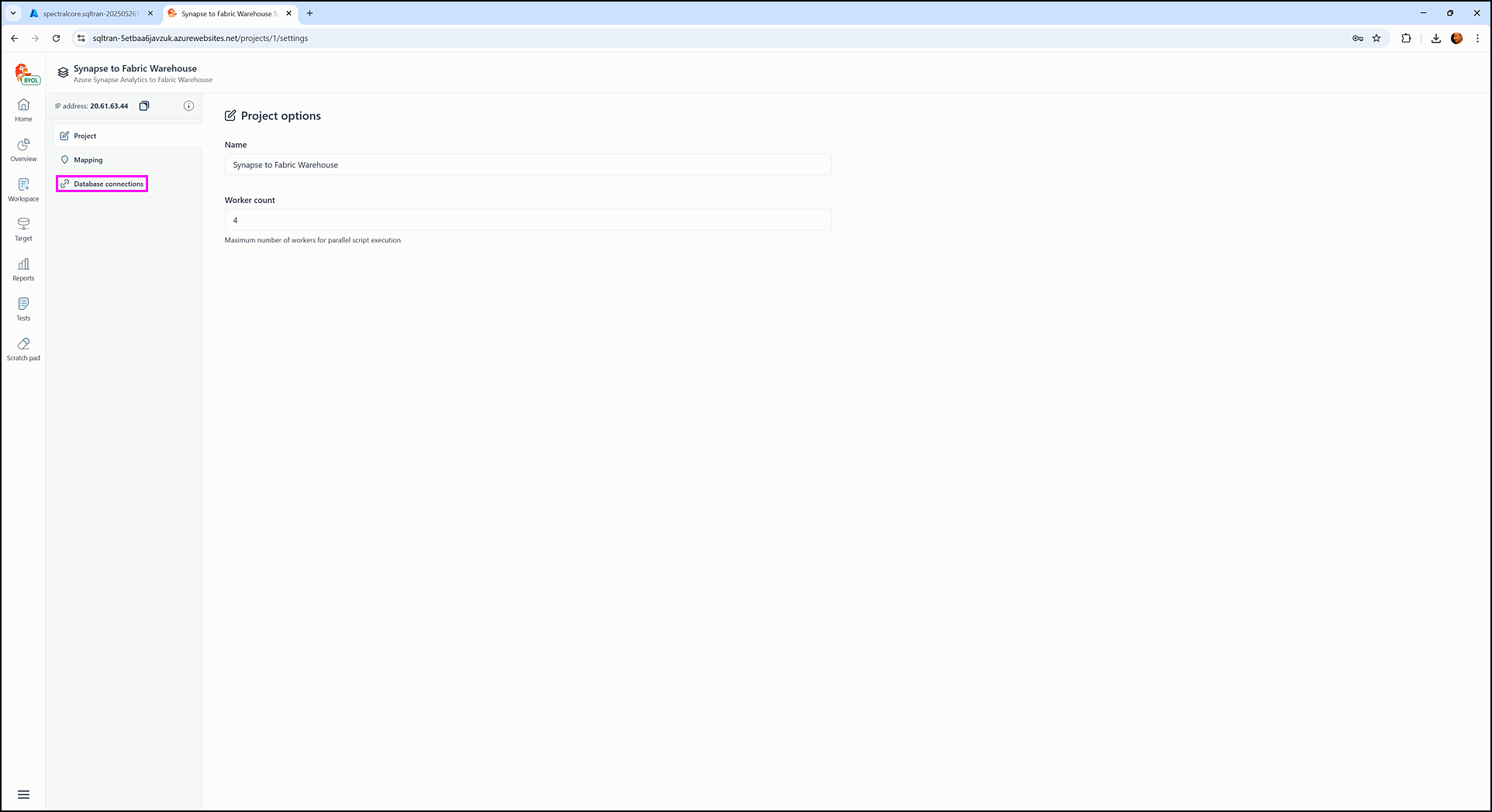 This will open the Project settings screen, where connection settings and other configuration options can be managed.