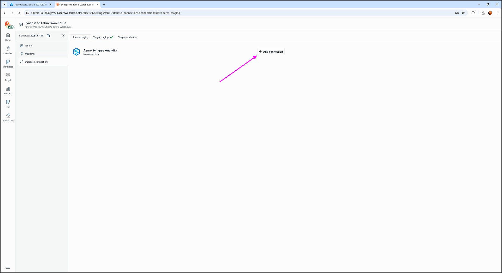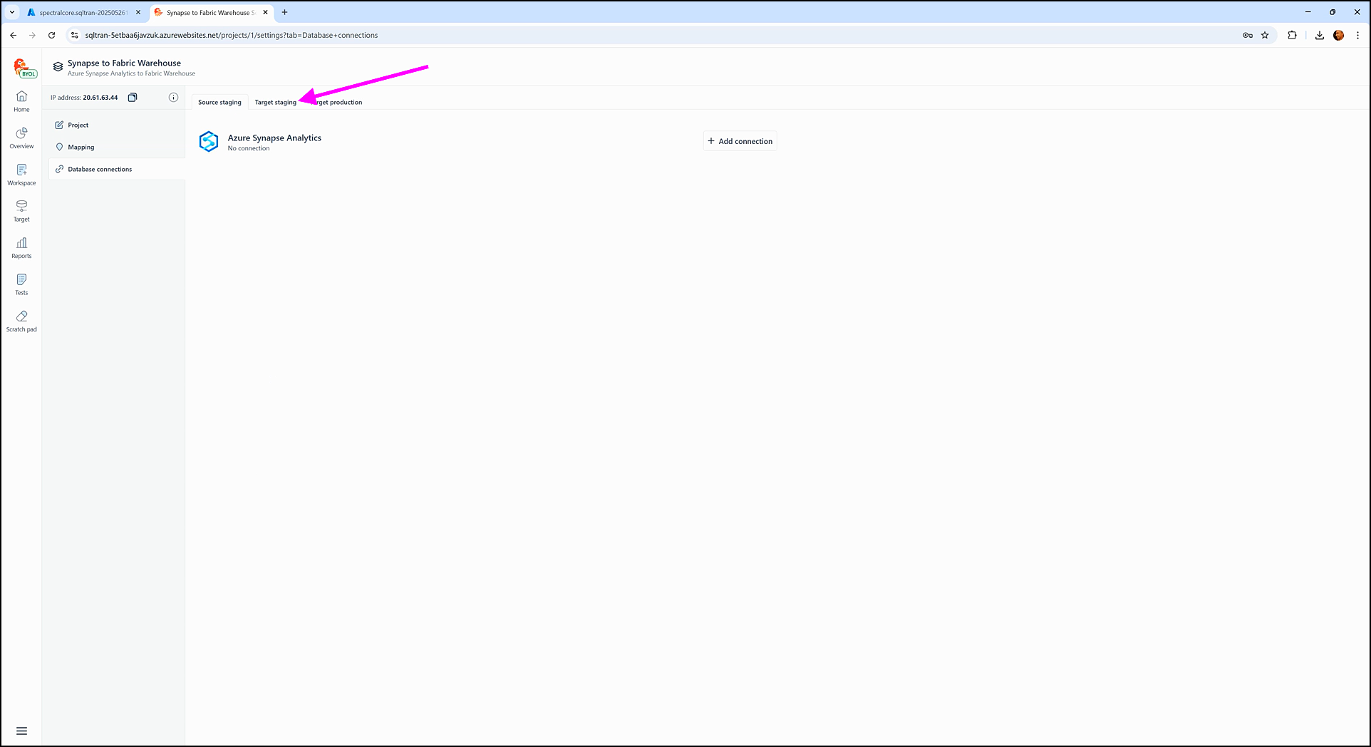 Now click the Target staging tab in the Database connections section.