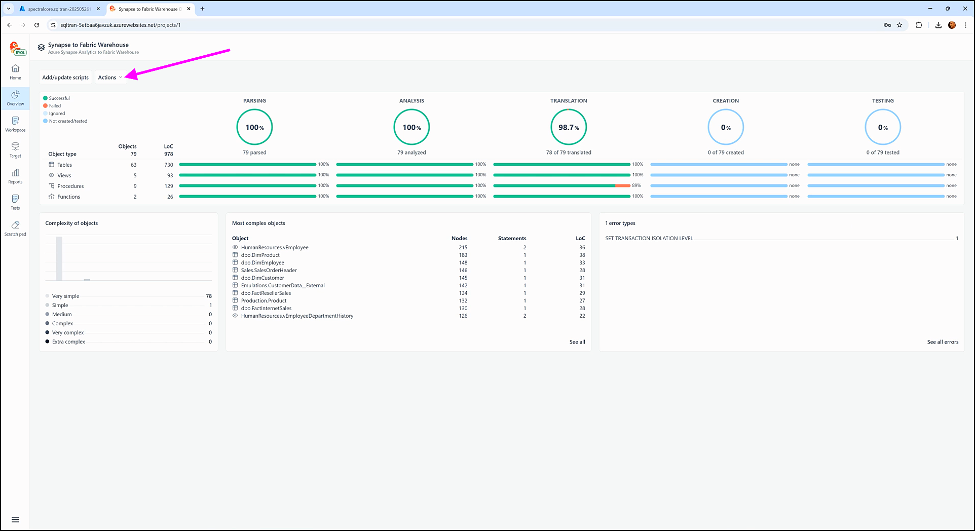 Before translated SQL can be tested, the target staging database must contain the same schema as defined in the current SQL Tran project. Since connections to both staging databases have already been configured, the next step is to create the required objects in the target environment.