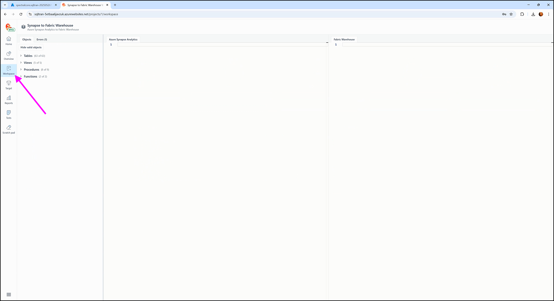 Click the Workspace button in the left-hand sidebar to switch to the Workspace screen.