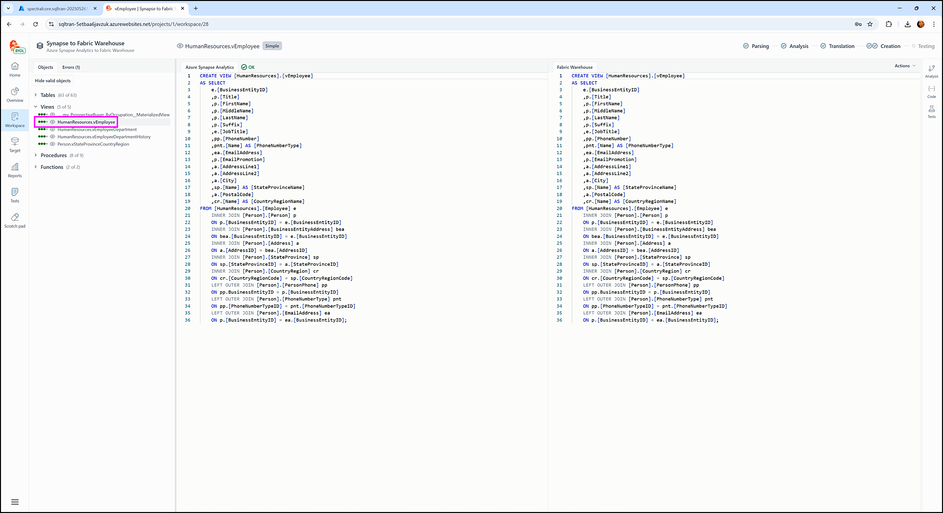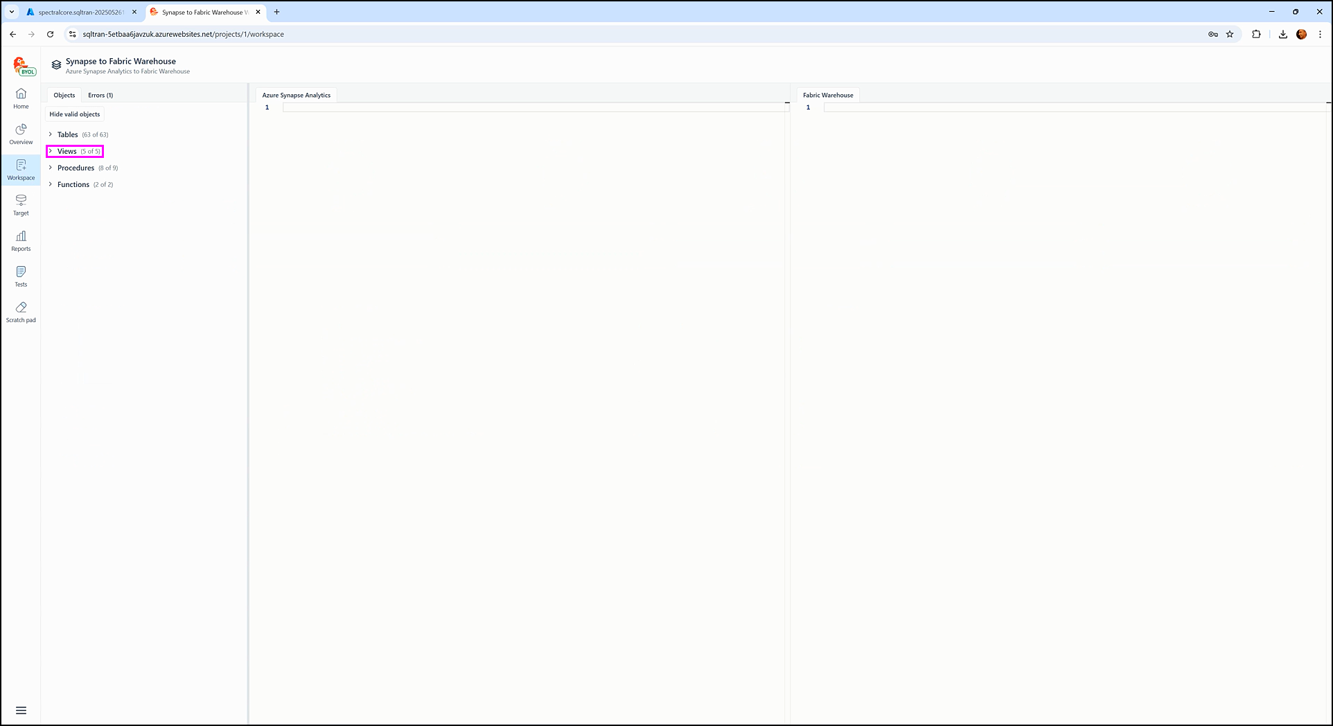 After refreshing metadata in the previous step, SQL Tran now has an accurate, up-to-date understanding of the objects in both the source and target staging databases. During the refresh, SQL Tran queried both environments to update its internal model of the project’s schema, including object existence, dependencies, and lifecycle status.