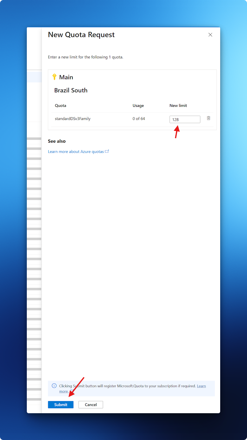 To deploy SQL Tran on Azure Marketplace, one needs to have quota in the region where they plan to deploy: