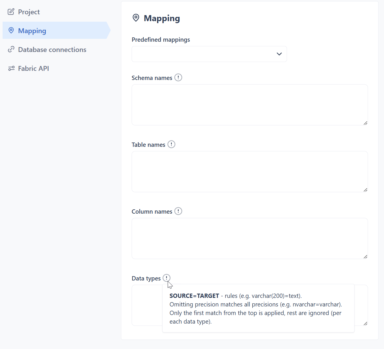 In the Column names configuration, you can establish renaming conventions for columns by creating "SOURCE=TARGET" rules. The system will apply only the first matching rule for each column, disregarding subsequent matches.