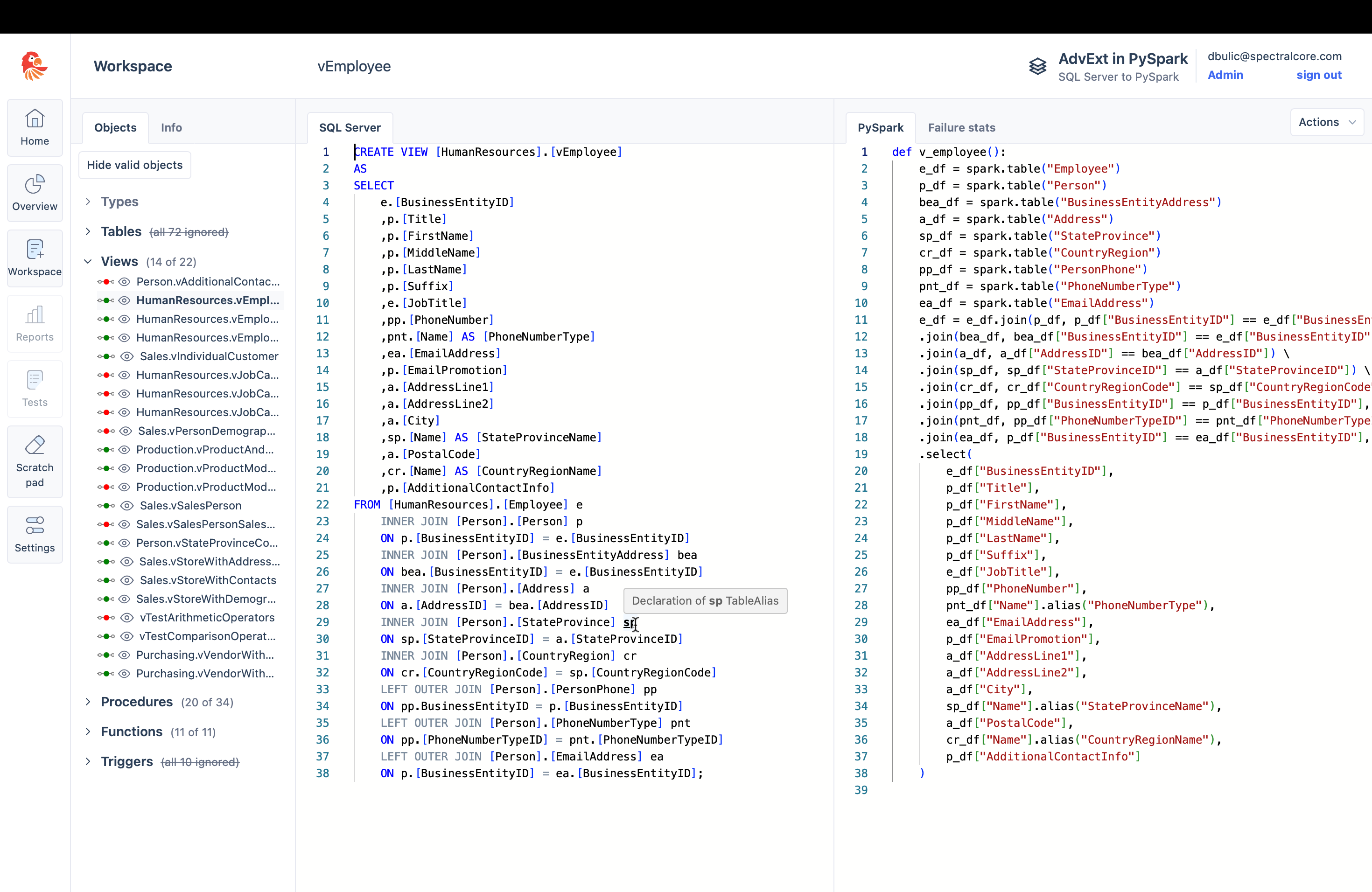 Each object has source and target editors side-by side. By default, none are editable and SQL Tran is managing the transpilation for you. You can override source or target.